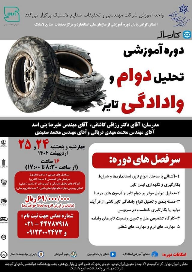 (اعطای گواهی پایان دوره از سازمان ملی استاندارد و مرکز تحقیقات صنایع لاستیک)