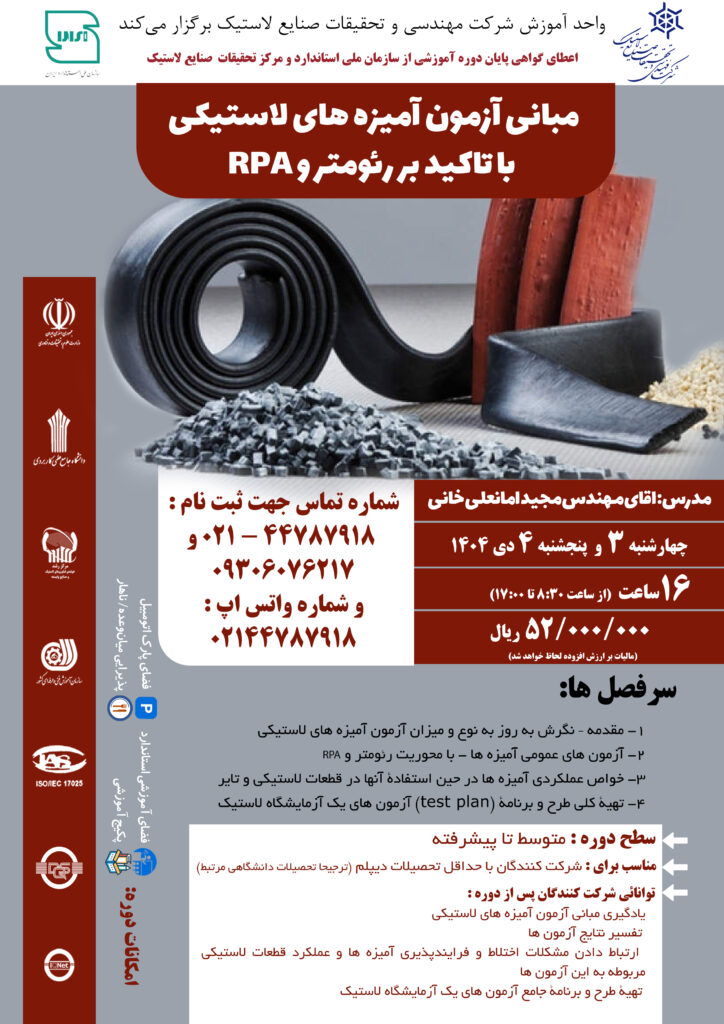 دوره مبانی آزمون آمیزه های لاستیکی با تاکید بر رئومتر و RPA